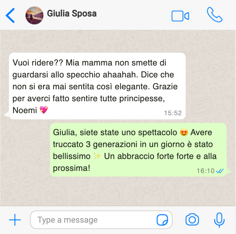 Anche le persone più care alla sposa meritano un tocco speciale. Il mio trucco è progettato per esaltare la loro bellezza, assicurando siano in sintonia con l’atmosfera nuziale.