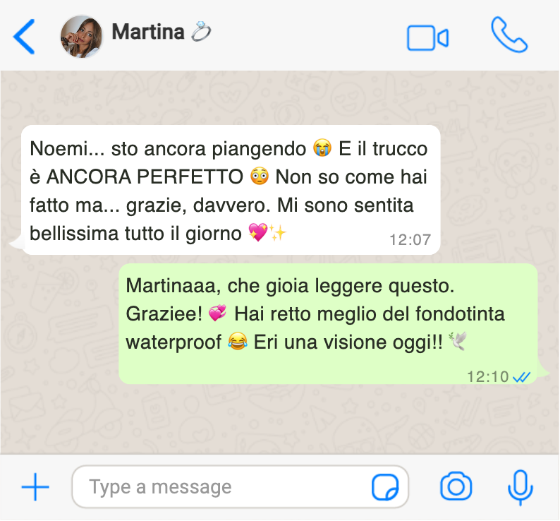 Se dopo la prova decidi che sarò la tua Make Up Artist ufficiale per il Matrimonio, il prezzo della prova ti verrà scalato dal totale. Il costo finale sarà sempre e solo 150€, tutto incluso.