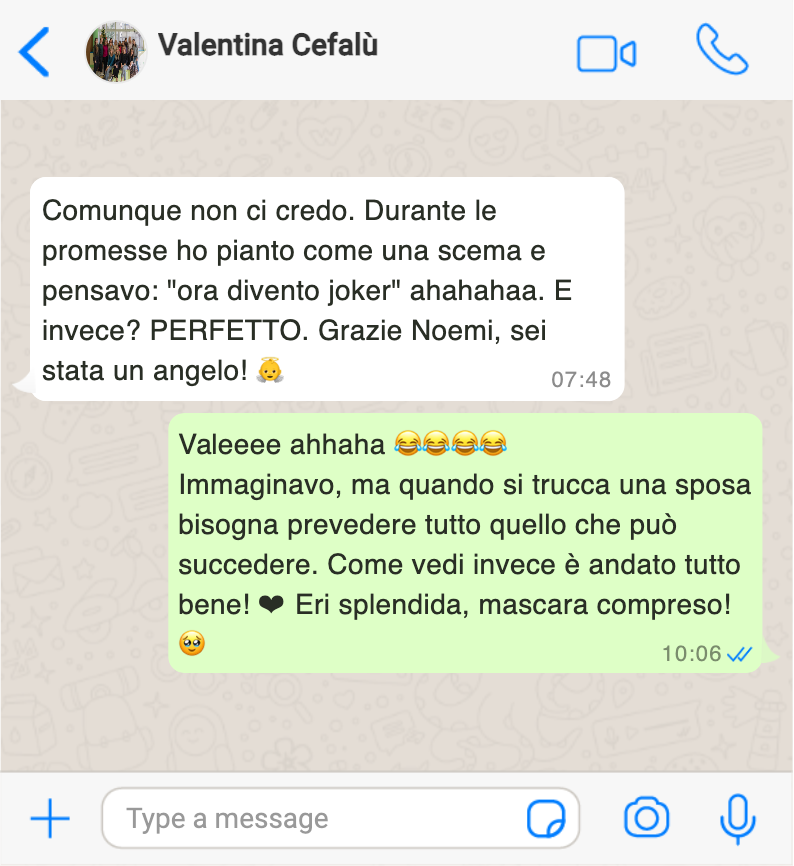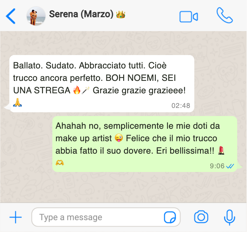 • Make-up ufficiale il giorno delle nozze, realizzato con prodotti HD waterproof, ciglia finte incluse e fissaggio 24 h.
